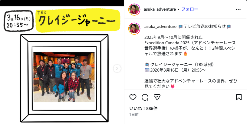 武井明日香さんは、2026年3月16日放送の クレイジージャーニー に出演予定です。